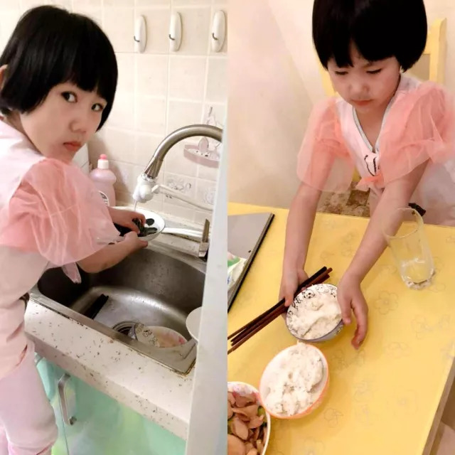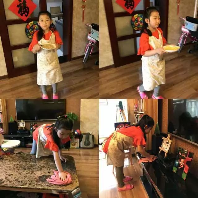 傍晚回到家,开始做饭,小家伙又冒出来要求帮厨,一会儿切菜、一会儿洗菜,还张罗大家吃饭,甚至在饭后抢着洗碗!这突如其来的成长,让人出乎意料。结果她不紧不慢的对大家说:“学校让我们做一天的妈妈,你们说我做的好吗?” 大家恍然大悟,异口同声地说,“好!”