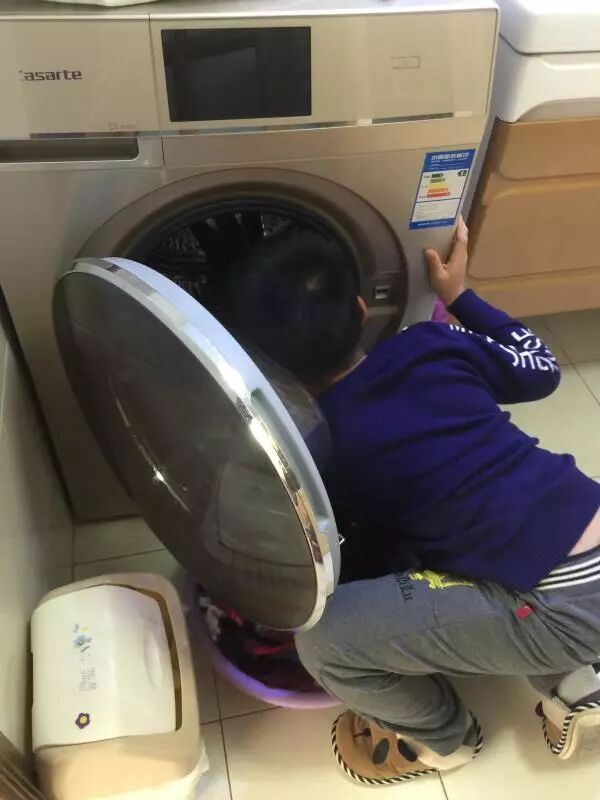 看来,洗衣机圆筒的容量还真不小,我掏啊掏。往外取衣服时,我心里在想“感谢你,洗衣机,帮妈妈把衣服洗的这样干净。为了减轻你的负担,以后我要尽可能的保持卫生,让你洗起来更容易些。”