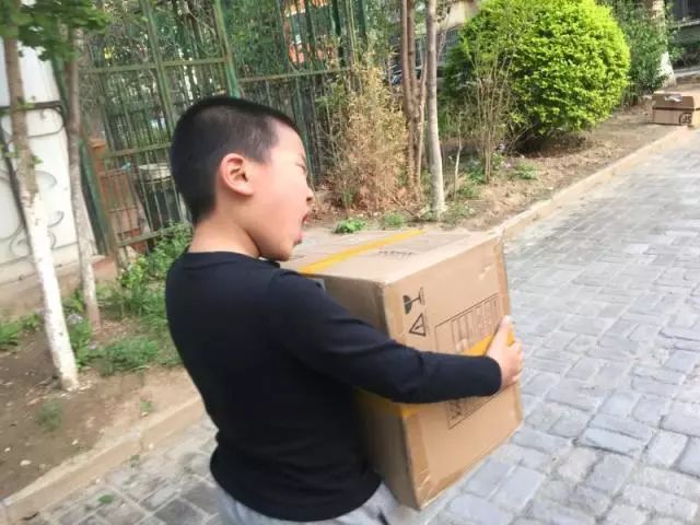 帮妈妈取快递。啊呀,这箱子怎么这么重!