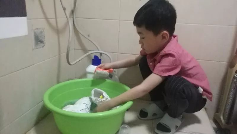 帮妈妈洗衣服,还是第一次。虽然有点摆拍的嫌疑,但也带着满满的仪式感。当洗衣服变成生活里的稀松平常,我们成年人已经忘记了劳动之初的那种狂喜。看着孩子的跃跃欲试和并不娴熟的稚嫩手法,自己人生之初的体验也在苏醒。
