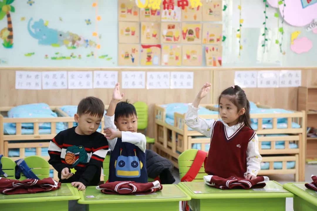 K4班同学信手拈来,只见那校服在他们手中迅速“变身”,简直神奇极了。