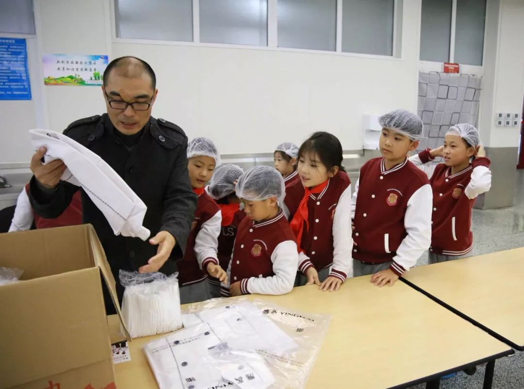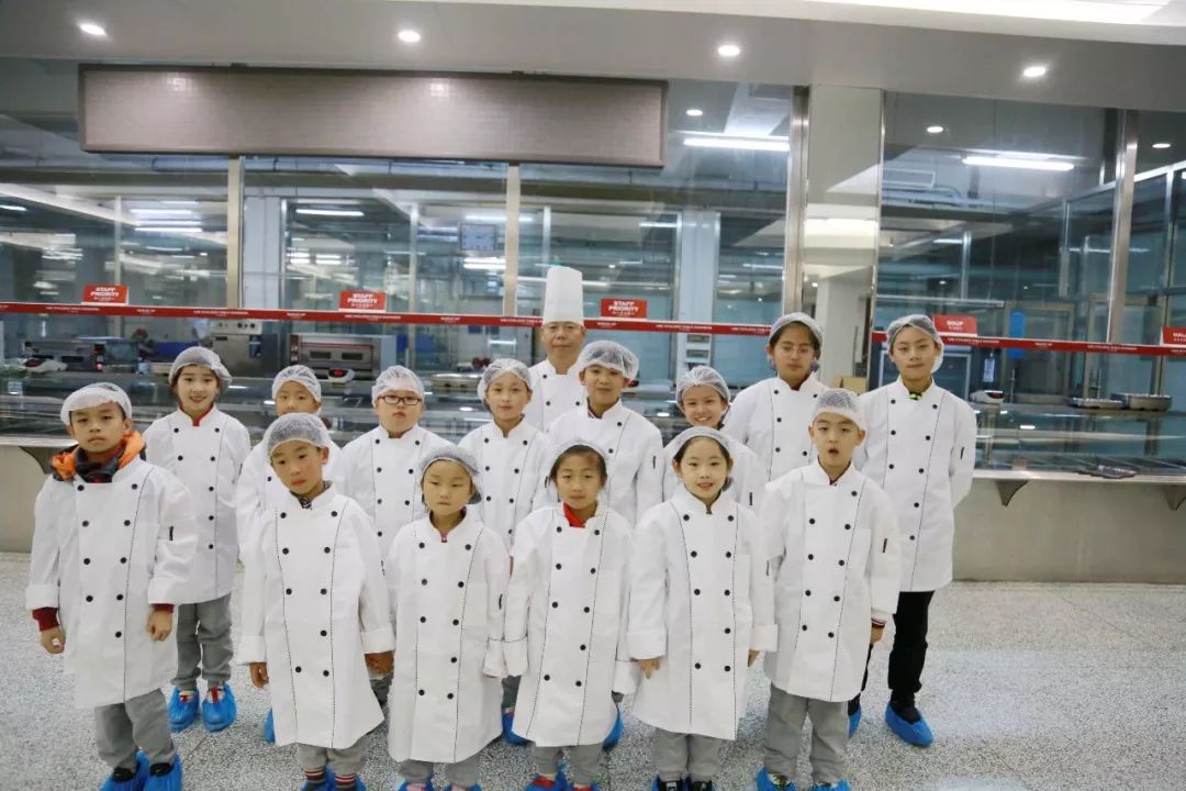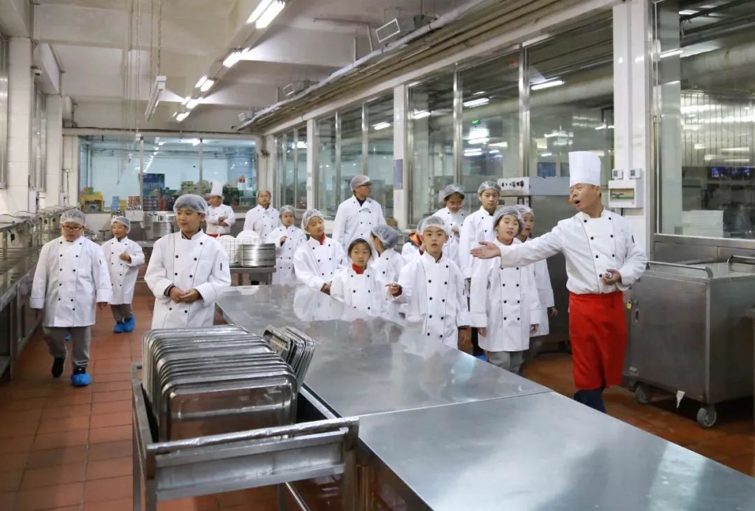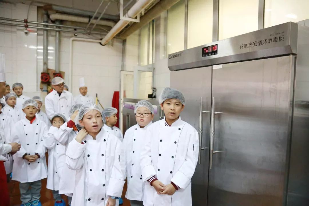 今天,王府校区的餐厅后厨迎来了一批特殊的客人。他们带着闪亮的眼睛、挑剔的鼻子、满脑瓜的问题,头戴发套、身着厨师服、脚套鞋套,深入一日三餐三点的发源地进行探秘。前来参观的客人,就是来自于王府外国语学校小学部一至六年级的学生代表们。