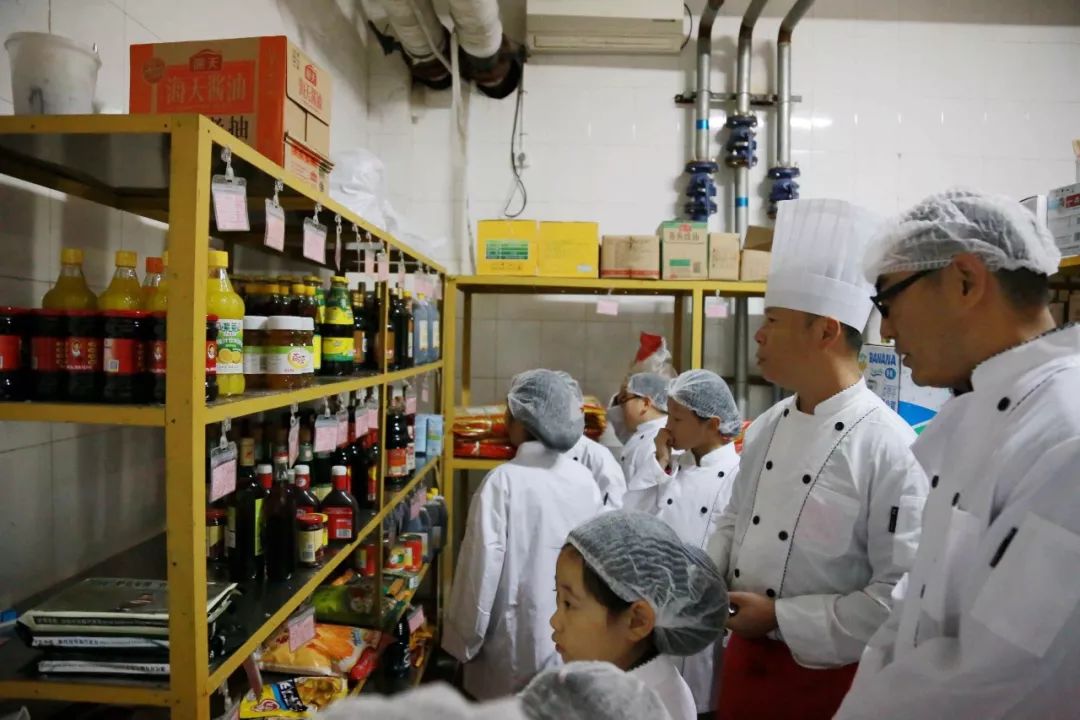 第二餐厅门口,餐厅的厨师长朱艳东师傅热情接待了教导处李立主任和学生代表一行。
