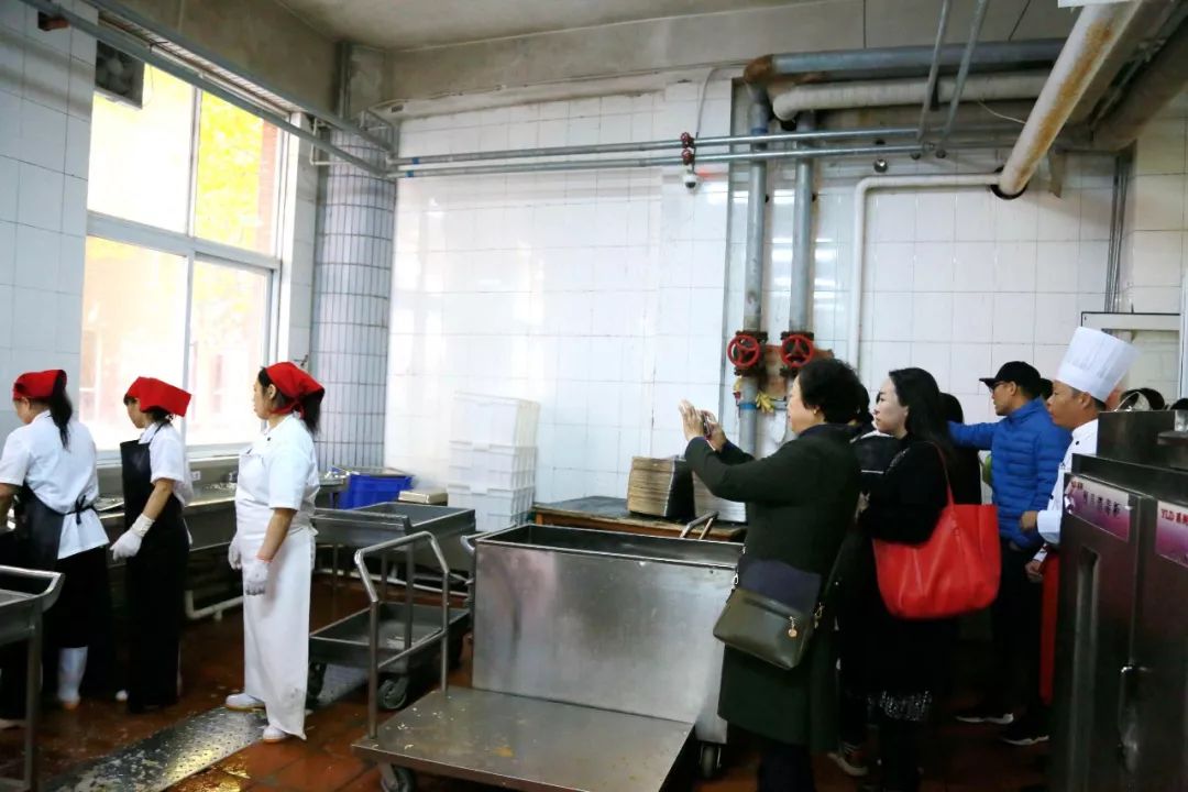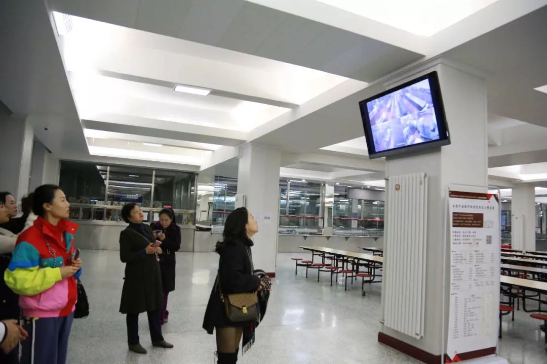 随后,家长团还参观了菜品清洗区、备菜间、切菜间、炒菜间,看到砧板按照菜、肉、海鲜分类使用,炒菜大锅和厨具干净整洁,这不是为了迎接检查特意准备的,因为根本不需要,这就是王府食堂每天的常态化。