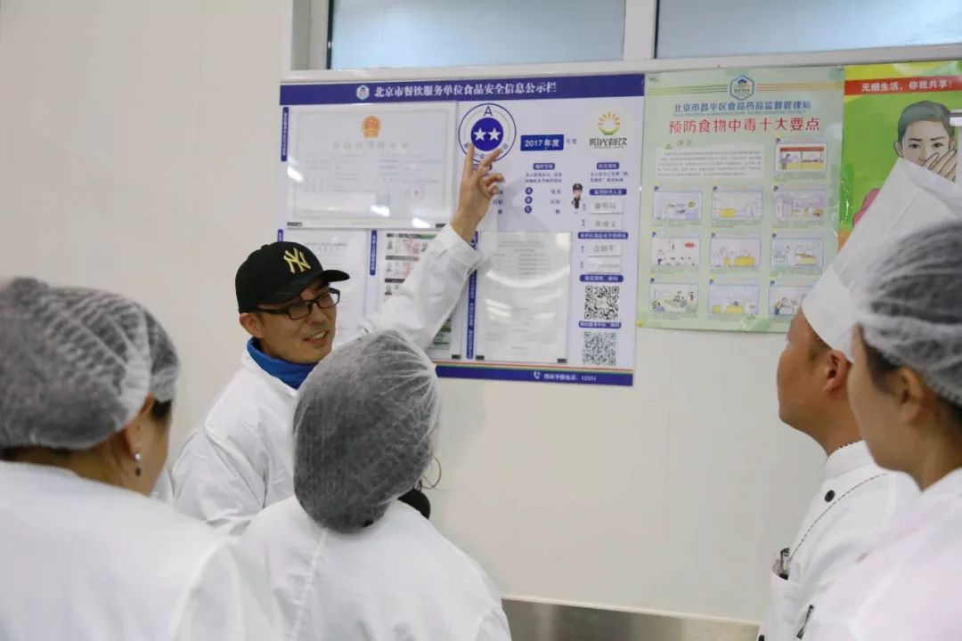 在食堂的公示墙上,有一块由北京市食品药品监督管理局评定的“北京市餐饮服务单位量化分级评定等级”公示栏,王府学校食堂在2017年度获得A级二星,完全符合“阳光餐饮”的建设标准!
