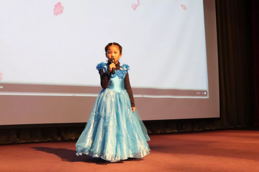 经过近一个月的筹备,11月7日上午,一年级“我是小歌手”英文歌曲大赛终于落下帷幕。包括最佳女声小歌手、最佳男声小歌手、最佳合唱家庭等9个奖项的80多位参赛同学领到了奖杯或奖状。伴随着A Little Love的歌声,本次颁奖典礼正式开始。于馨雨身着蓝色公主裙款款走上舞台。她的歌声稚嫩而不失优雅,打动了全场的老师和同学们。