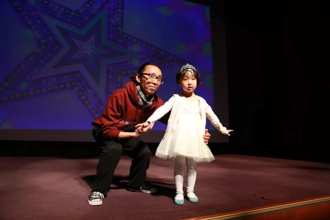 终于到了我们班级上台的时候了。我暗自观察Coco的状态:没有一点紧张与害怕,很自然走了出去,虽然动作还是很生硬,但是已经超出了我的意料,宝贝的潜力是无限的!