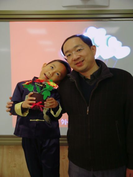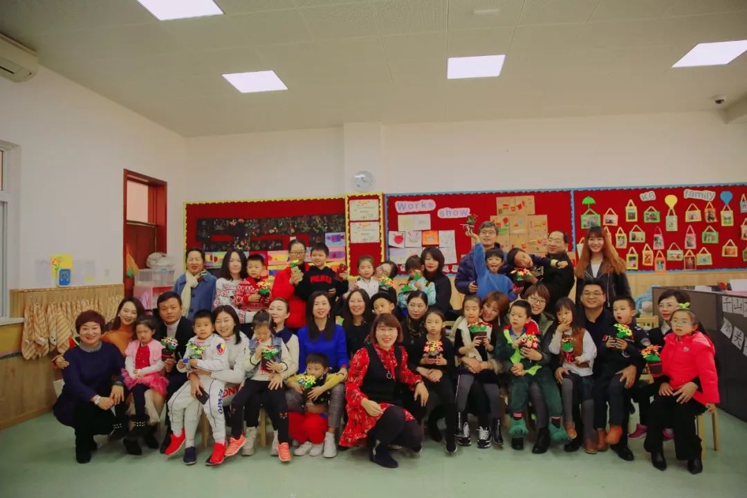 后面是做手工花,我们的进度比其他家庭的慢,乐成对有点扁的花盆还不太满意,经过我的努力,花盆终于不太扁了,最后赶上了其他家庭的进度,尽快完成了。家长摄像师给我们俩拍照,乐成把头靠到我肩膀,还挺有镜头感。