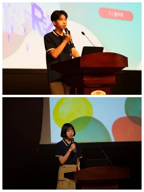 ▲雷声彬和孙圣茜同学分别分享了社团与校园各种大型活动的情况。