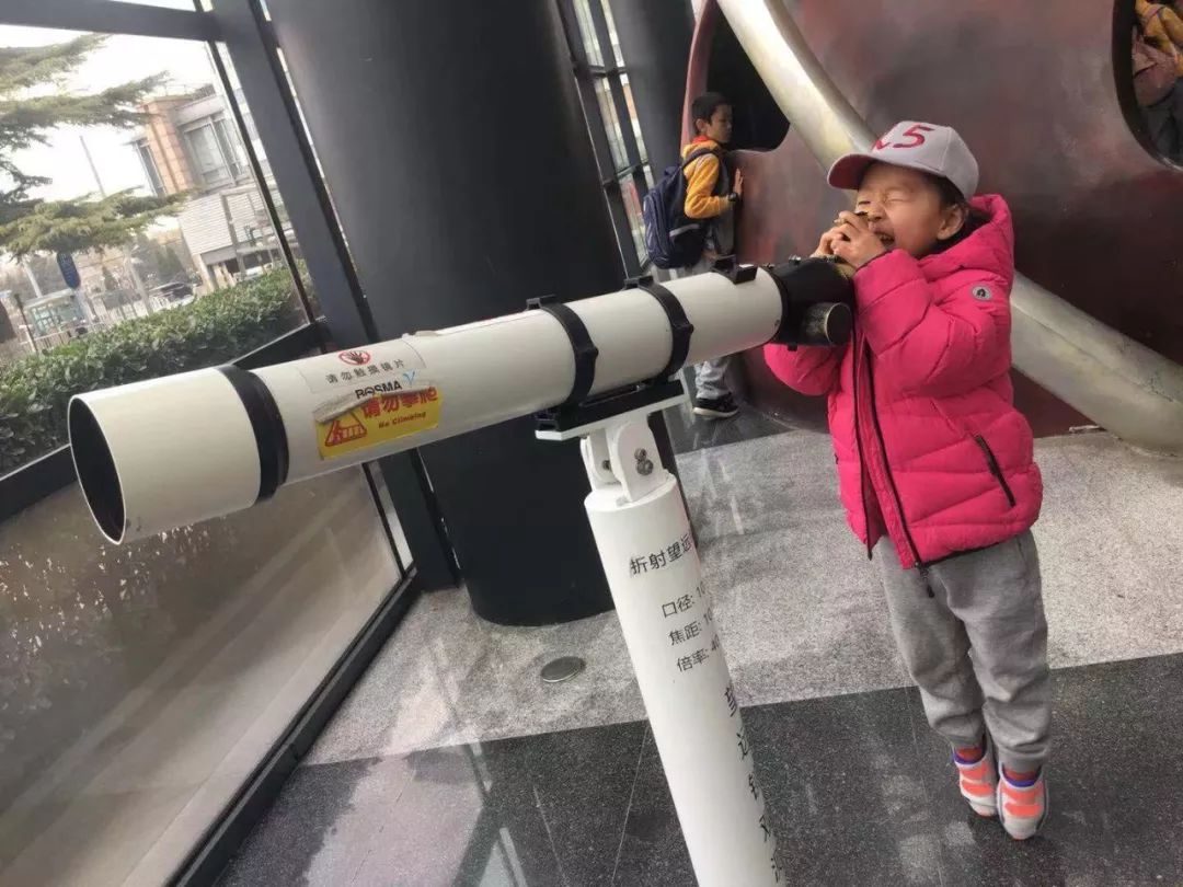 当小朋友们进入天文馆的那一刹那,都兴奋地叫了起来:“好漂亮啊!”从太阳系的形成,到地球与太阳系的紧密联系;从八大行星到随四季变化的星座;从天文望远镜的演变到人类对太空的前沿探索,同学们徜徉在了浩瀚的宇宙当中。