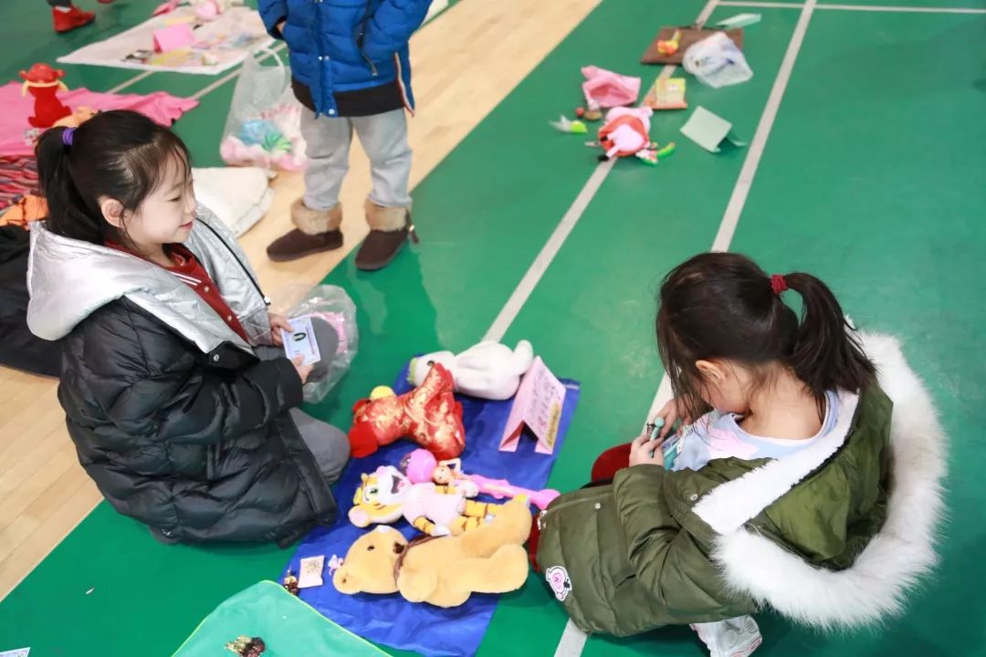 午饭后,二年级的孩子们迅速集合至既定场地,明确各班“疆域”后,立即铺开摊位,迅速秀出“镇店之宝”。一时间讨价还价声不绝于耳,老师们也纷纷被吸引过来,大家“寻宝淘宝”的热情异常高涨,场面相当火爆!