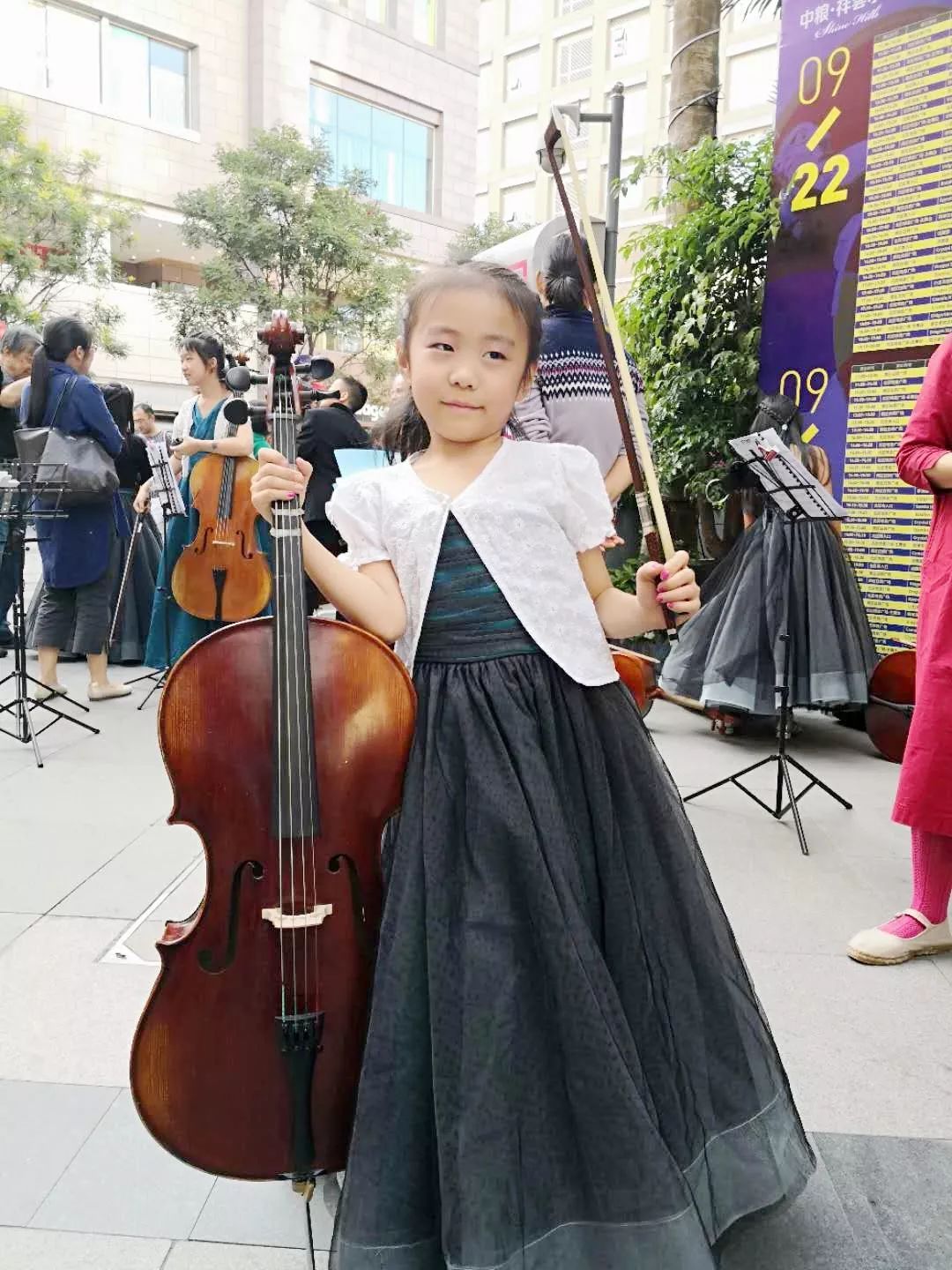 一年级入学前,在爸爸妈妈的鼓励下,你选择了大提琴这项乐器。通过半年的枯燥练习,现在你也能拉出非常美妙的乐曲并每月随团演出。相信你能收获到坚持所给你带来的快乐。