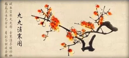 对冬至有了理解后,便是《九九消寒图》和《九九消寒帖》的绘制过程。人们在冬至这一天绘制九朵梅花,每朵梅花九瓣,冬至日起每日涂红一瓣梅花,待九九八十一瓣梅花全部涂红,窗外便是春色。或者写一句九字诗文,最常见的诗文是“庭前垂柳珍重待春风”,每字九画,每日涂满一笔,待整句诗文涂满,便是春来时。