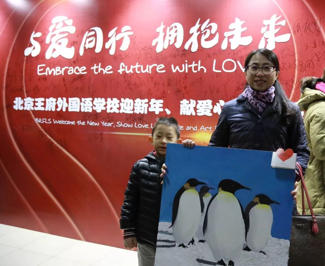 王府娃画作的爱心义卖展,吸引了来校家长们的驻足欣赏。演出开始前,就有多幅画作被家长们拍走。所得善款,将汇入爱的事业,温暖需要的人。