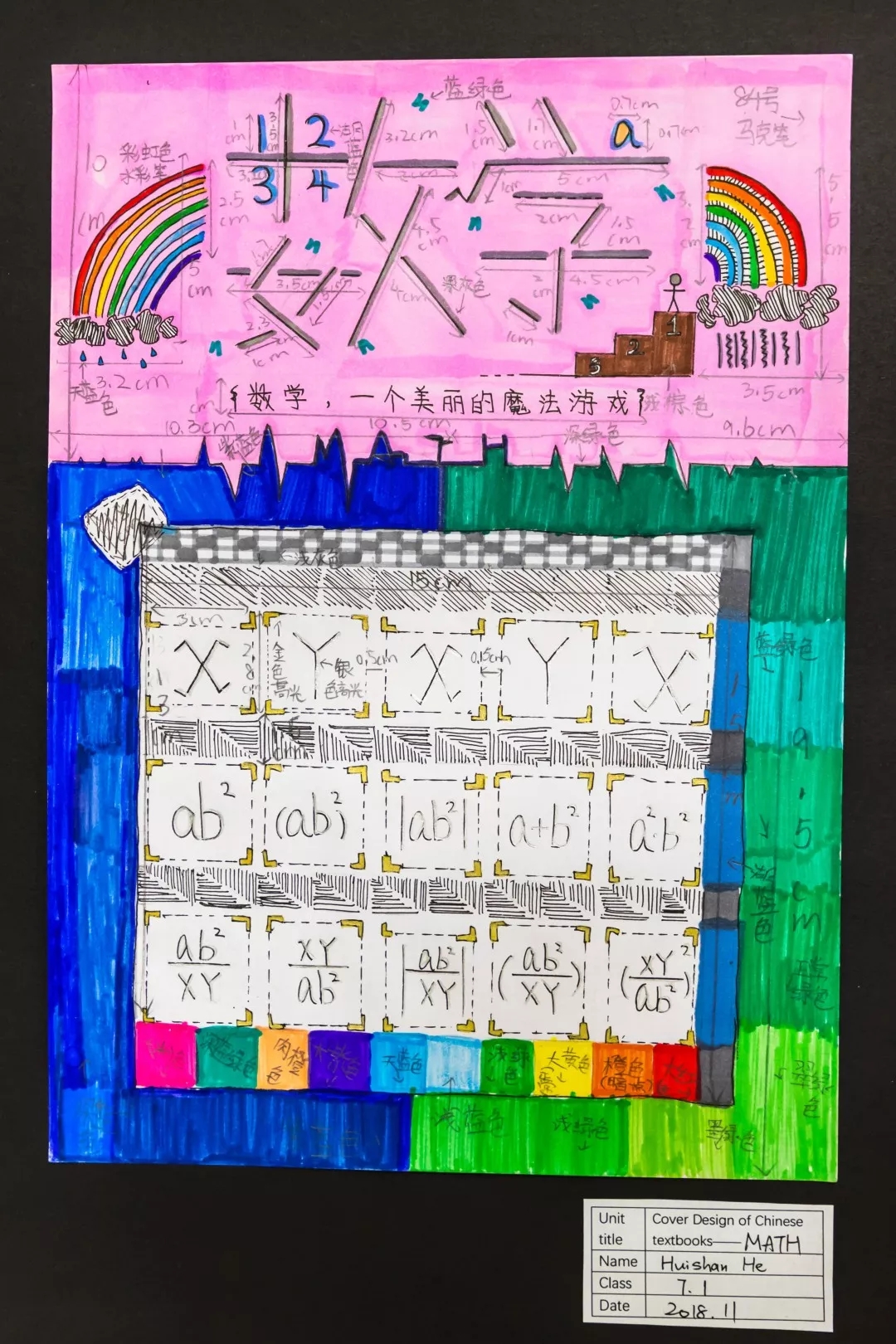 “数学,是一个美丽的魔法游戏”。7年1班的何惠姗同学在她设计的数学教材封面上如此写道。