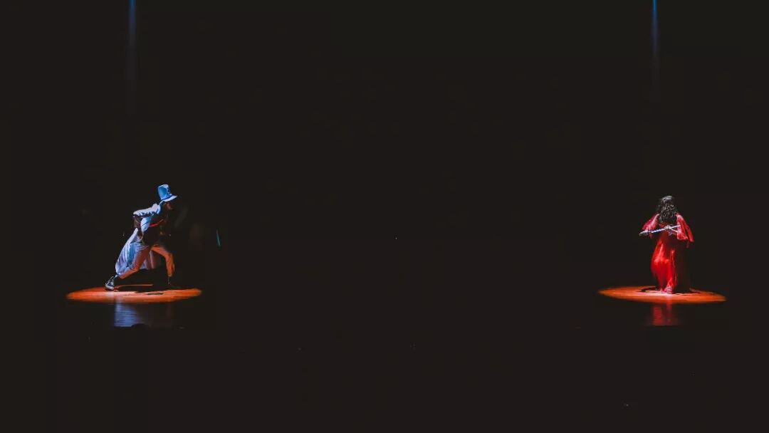 ▲龚灿、韩佳怡——小提琴+古筝混搭二重奏《渔舟唱晚》