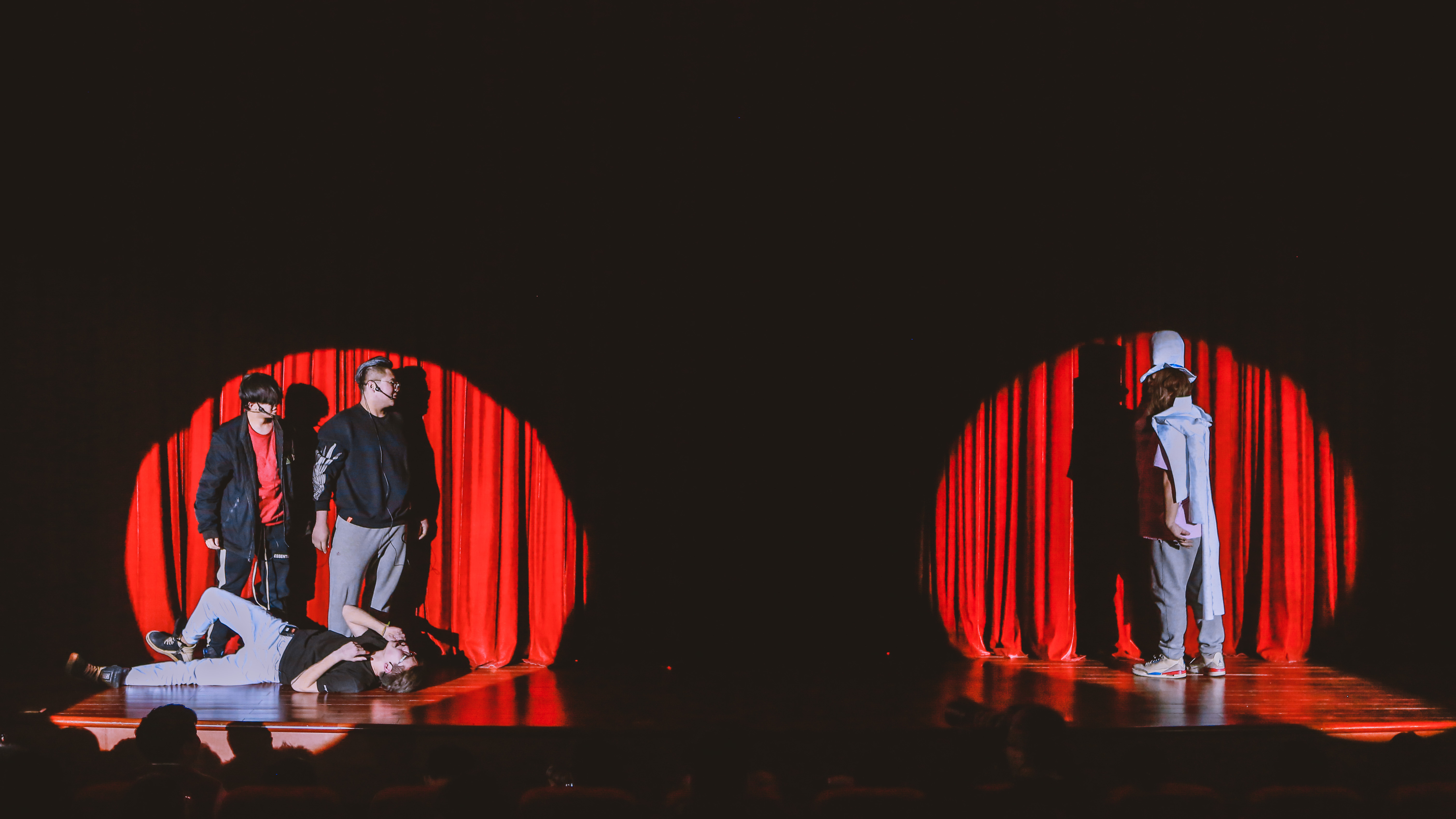 ▲张艺骞、马杰森融合校园生活的相声《舍友轶事》引发爆笑连连