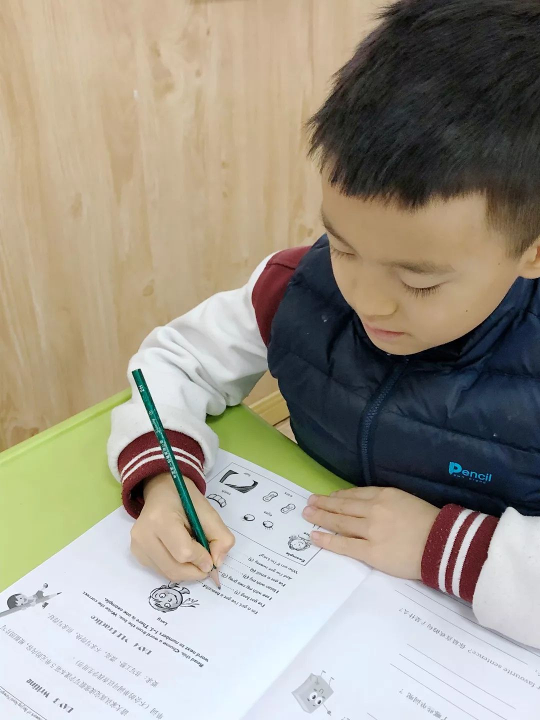 而接下来和同学的互动中,我发现孩子们是真的有能力面对检验。他们可以迅速理解题目含义,听力涂色很淡定,词汇理解很扎实,能够顺利阅读,回答问题很有创意和个人特点。他们的坦然和自信打动了我,我感到坐在对面的孩子们长大了,需要重新认识他们。整个过程中,他们都很投入、努力。