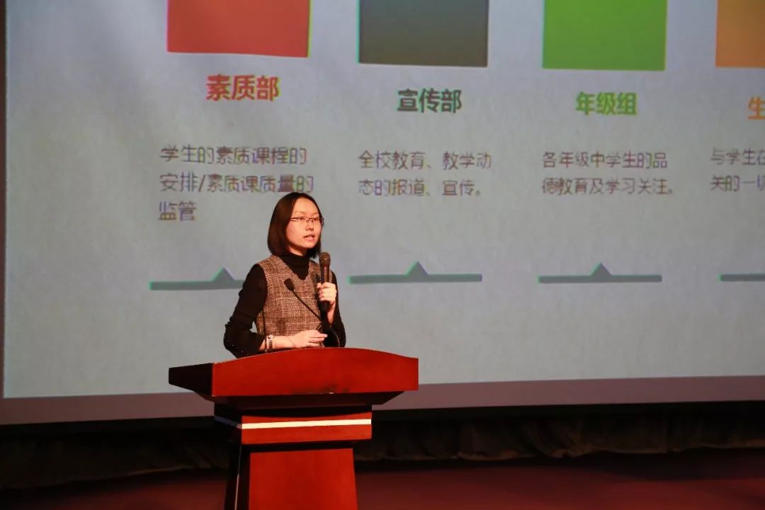 李敏副校长对新学期主要工作做了相关部署。她倡导全体教师发扬“求实、求精、求深、求新”的工作作风;强调班主任应与教研员及年级组长做好沟通对接,重点在“德育”和“教学”两方面做好学生的双层培养。