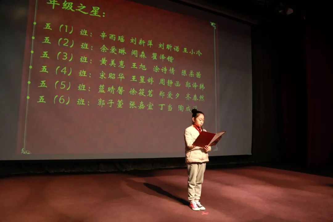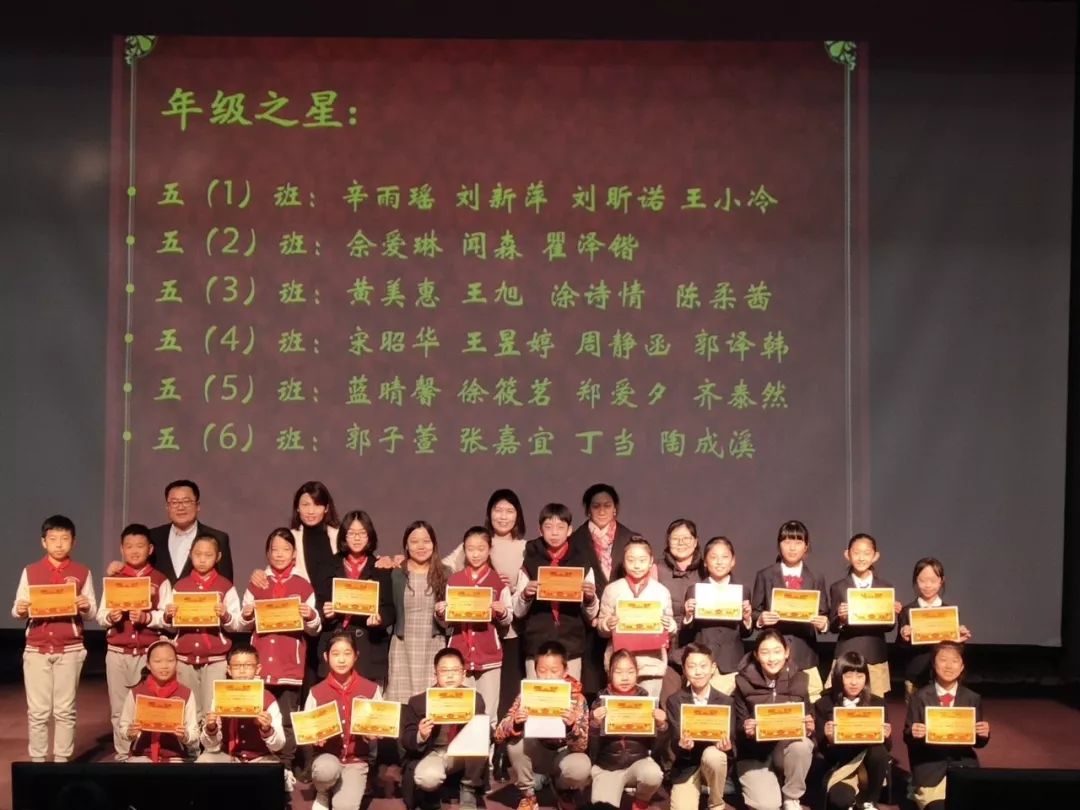 新学期、新梦想;新起点、新希望!首先,年级组长沈倩老师就上学期德育教育提出的四“jing”评比,为表现突出的学生颁奖。台上获得荣誉的同学们个个精神抖擞,笑意盎然;台下,掌声热烈而激昂,在榜样的激励下,孩子们正准备乘舟破浪,扬帆起航。