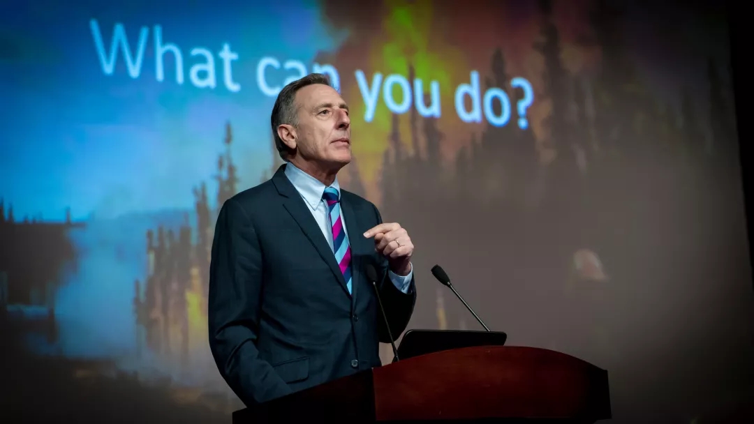 “从现在开始,如果我们能利用可再生能源产生80%的电能,减少二氧化碳的排放,对煤的燃烧从40%减少到7%,也许我们能在2050年前将全球升温控制在1.5°C 。” 他列出的数据揭示了人类活动对全球气候的影响。