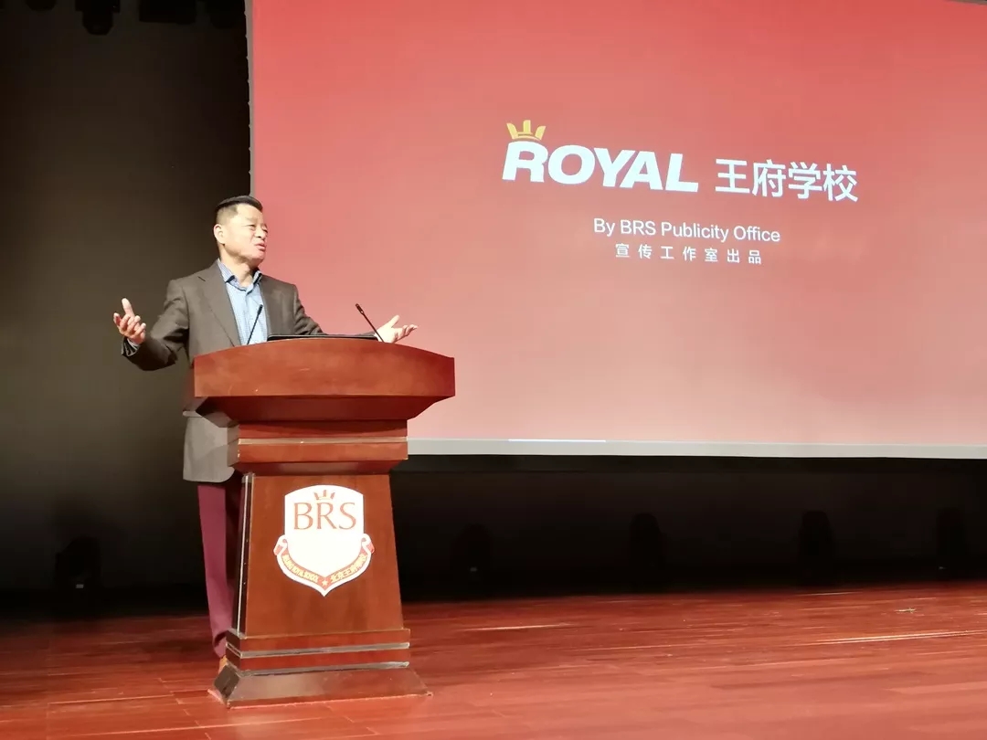 2019年1月6日晚,北京王府学校王广发校长在百忙之中来到演播厅,在热烈的掌声中,王广发校长登台为初中部六到九年级全体学生讲话,进行国际国内形势分析和期末考前动员。会议伊始,大家观看了王广发校长在2018年末利用自己的休息时间冒着大雪和严寒赶赴革命老区六盘水参加教育发展合作活动的视频。据了解,此次支持六盘水教育发展合作签字仪式是为深入贯彻落实习近平总书记在中西部协作座谈会上的重要讲话精神,进一步深化优质教育资源城市对其他城市的帮扶协作,在教育部的大力支持下举行的。