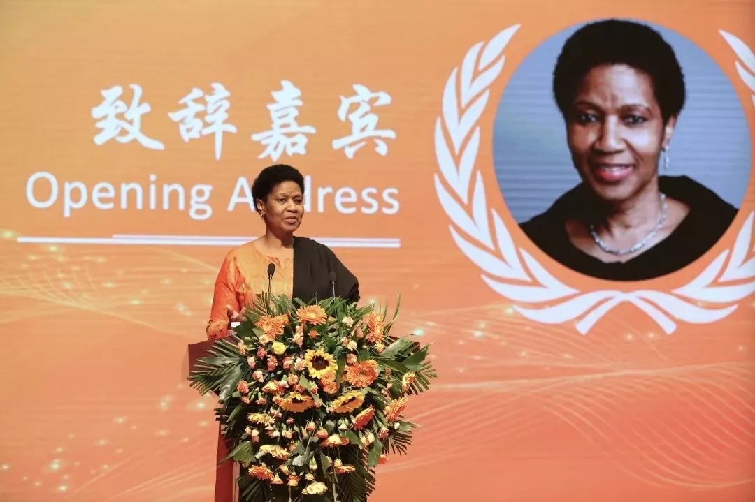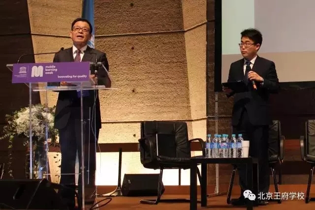 ▲2016年3月,李硕学长陪同王广发校长,在巴黎联合国教科文总部阐述王府的办学理念