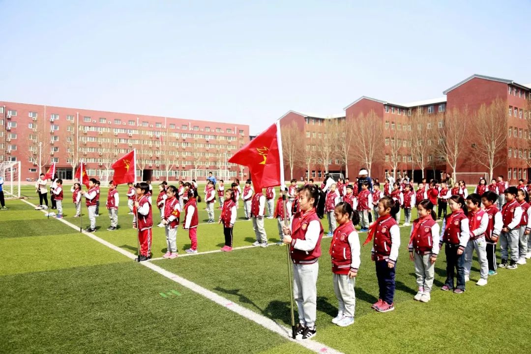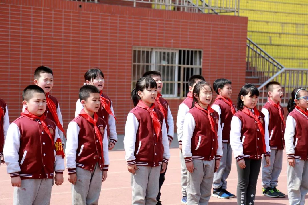 4月4日的操场上,少先队队旗迎风招展,二年级组全体师生庄严肃立,弘扬中华民族的传统文化,缅怀英烈,追忆先贤,重温少年先锋队誓词,共唱《共青儿童团团歌》。