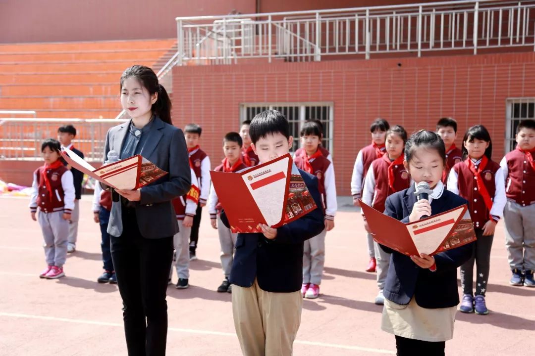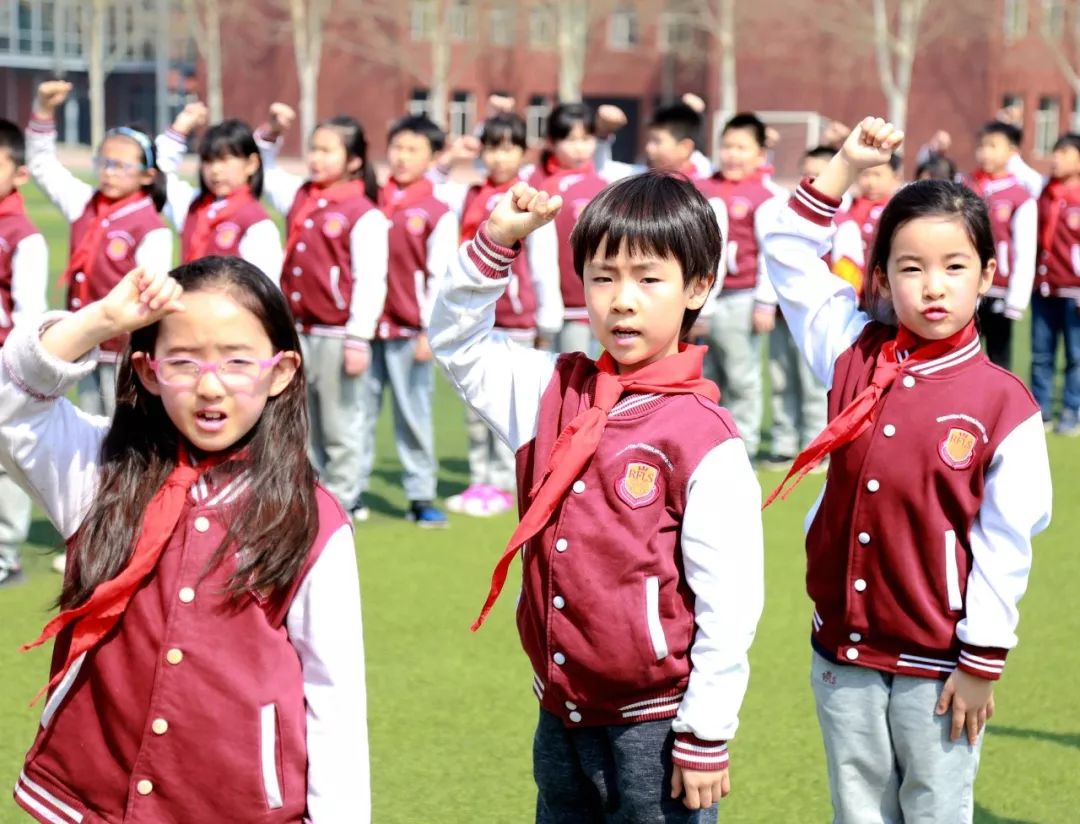 胸前的红领巾映衬着一张张虽稚嫩却认真的脸庞,举起右拳,郑重宣誓:
