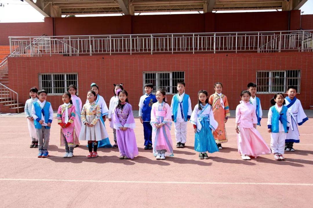 ▲二·7班同学化身小书童、小闺秀,齐诵古诗