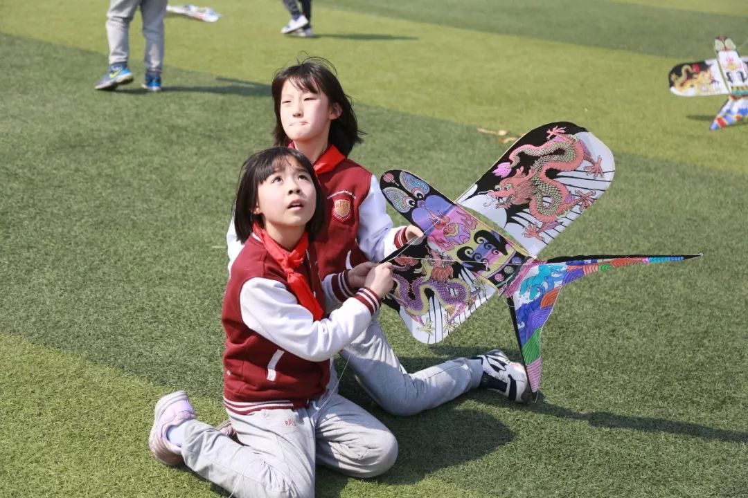 “正是一年春好色,忙趁东风放纸鸢。”蓝蓝的天空中划出了一道道优美的弧线,属于自己的风筝高高飘在空中,放飞了美好的心愿,也留下了难忘的清明记忆。