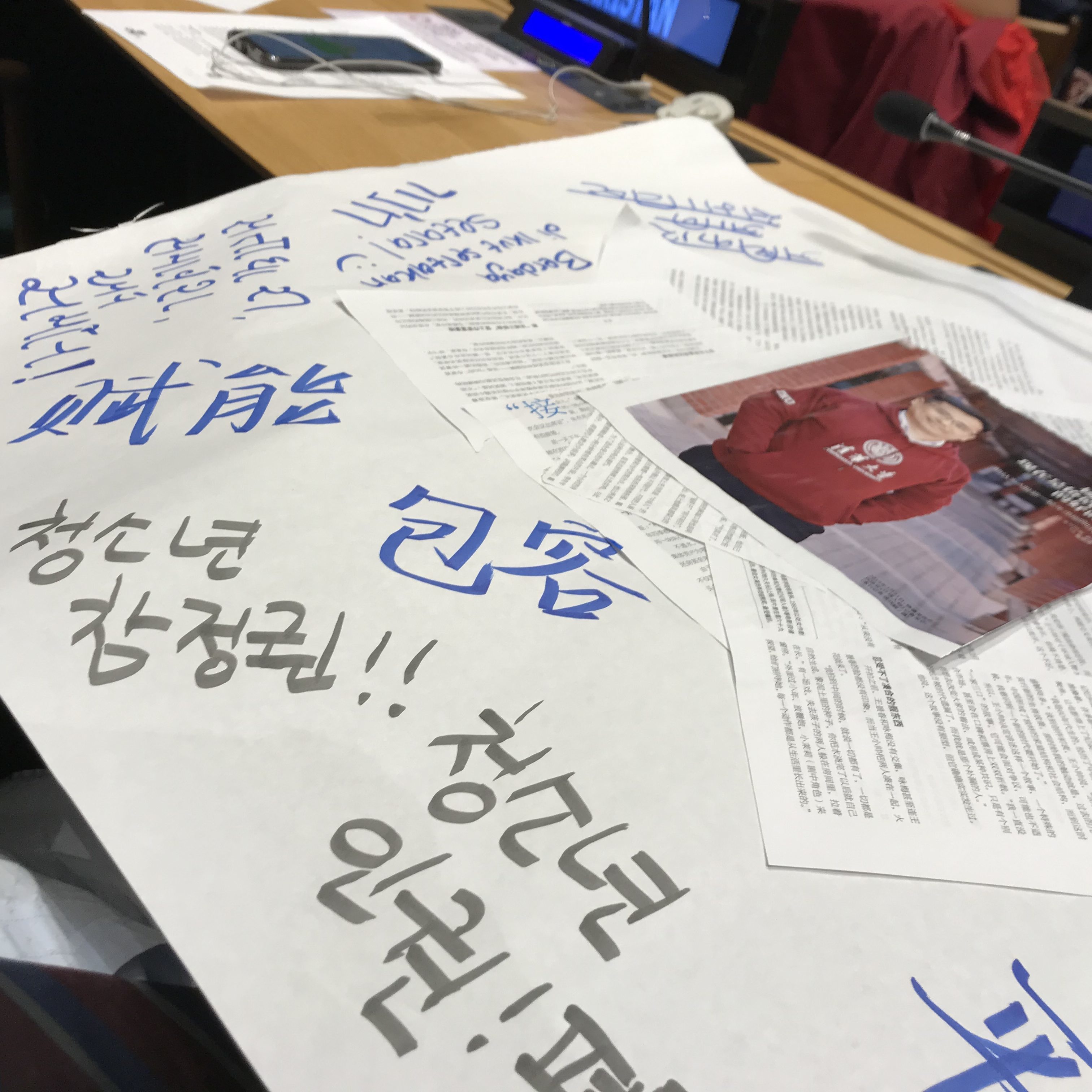 随后的会议中,在场青年代表利用海报来展示如何推进各项SDG落实的方案。赵鹏同学代表小组以如何让更多青年参与国际事务为主题发言,他认为联合国青年论坛给青少年提供了非常好的平台,青少年们的建议能够被有效倾听,想法可以被纳入到后期更多联合国高级会议的参考中,这是青少年赋权的最好体现,全世界的青少年都需要更多这样的平台。