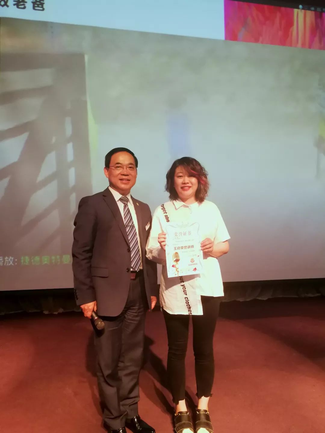 ▲ 小学部管小波校长为王奕雯同学的妈妈颁发“王府荣誉讲师”证书