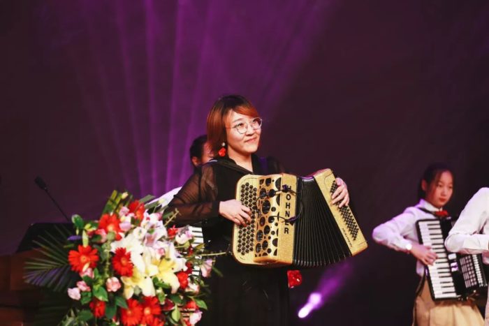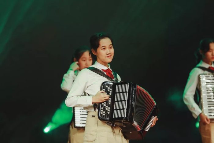 ▲初中部师生带来手风琴演奏《光阴的故事》