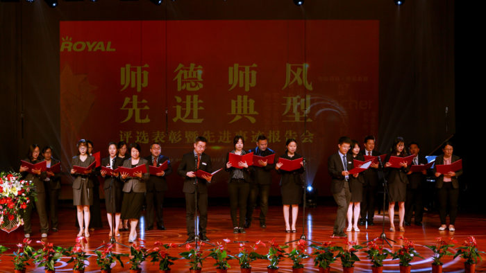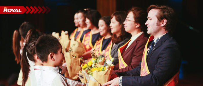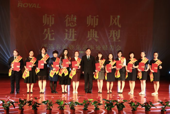In commemoration of the 35th Teachers’ Day, the Awards Ceremony for “Role Models for Teachers’ Morals and Ethics” was held to a great success in the BRS Gymnasium on September 10. Twelve veteran teachers were selected from all divisions of BRS to receive a model teacher award, a standard to which Principal Wang Guanfa helped propel all teaching staff through his encouragement. These twelve teachers have shaped students’ character and behaviors, in addition to engaging in international education models designed to enhance and maximize the knowledge gained by students. They are Guan Lili and Li Lixue from Beijing Royal Kindergarten; Feng Shuang, Guo Longyang and Yu Xiaoyan from Elementary School; He Jing and Zhang Shiwei from Junior High school; Xin Lirong, Huang Ting, Yao Yi, Zhang Ying and Timothy James O’Reilly from Senior High School. Dedicated teachers of many years at BRS, they have not only gained rich individual life experiences and outstanding teaching achievements, but, more importantly, have become role models of morals and ethical behavior for students and the entire BRS community.