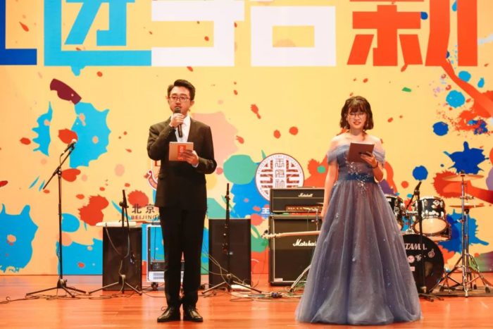 ▲高二11班的丁怡州、高三8班的李泽同学担任主持人