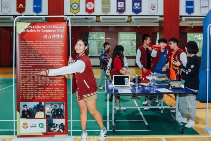 Excitement was in the air on September 25, when 44 student clubs sponsored the Annual BRS Clubs Recruitment for the 2019-2020 school year. Students visited booths of past clubs, as well as five newly-organized groups: Ibears Club, DJ Club, Astronomical Club, BRS Acappella Club, and Golf Club. BRS student clubs are designed to appeal to the varied interests of our students and cover a wide range of interests: arts, social science, academic subjects, science and technology, sports and many more. They also provide students with opportunities to meet like-minded peers, enjoy activities together and create meaningful social connections. For these reasons, participation in a club is highly encouraged at BRS. The event also featured on-stage talent shows by the Hot Music Band Club, CLOWN Dancing Club, Piano Club, DJ Club and the Cartoon Research Club; and on the gym floor, the Badminton Club and many other clubs held engaging games and activities. Exhibition booths helped visitors decided on which club were right for them and a showcased of each club’s special features via video.