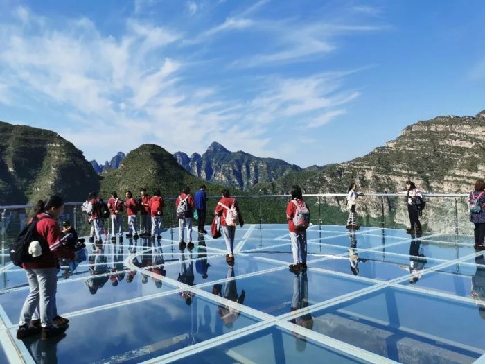 ▲挑战惊险与刺激的玻璃栈道,我们是勇敢的王府娃