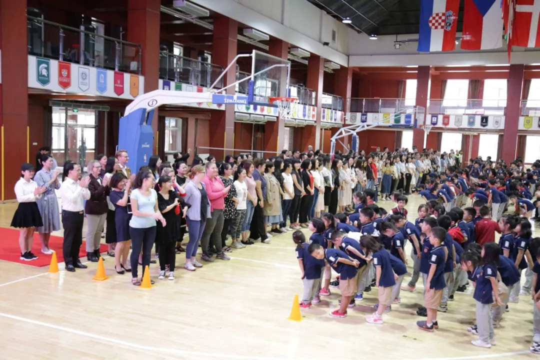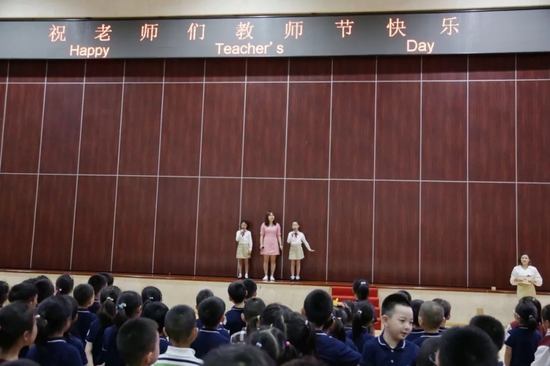 9月10日大课间,王府外国语学校小学部的孩子们齐聚风雨操场,为亲爱的老师献上爱的祝福。