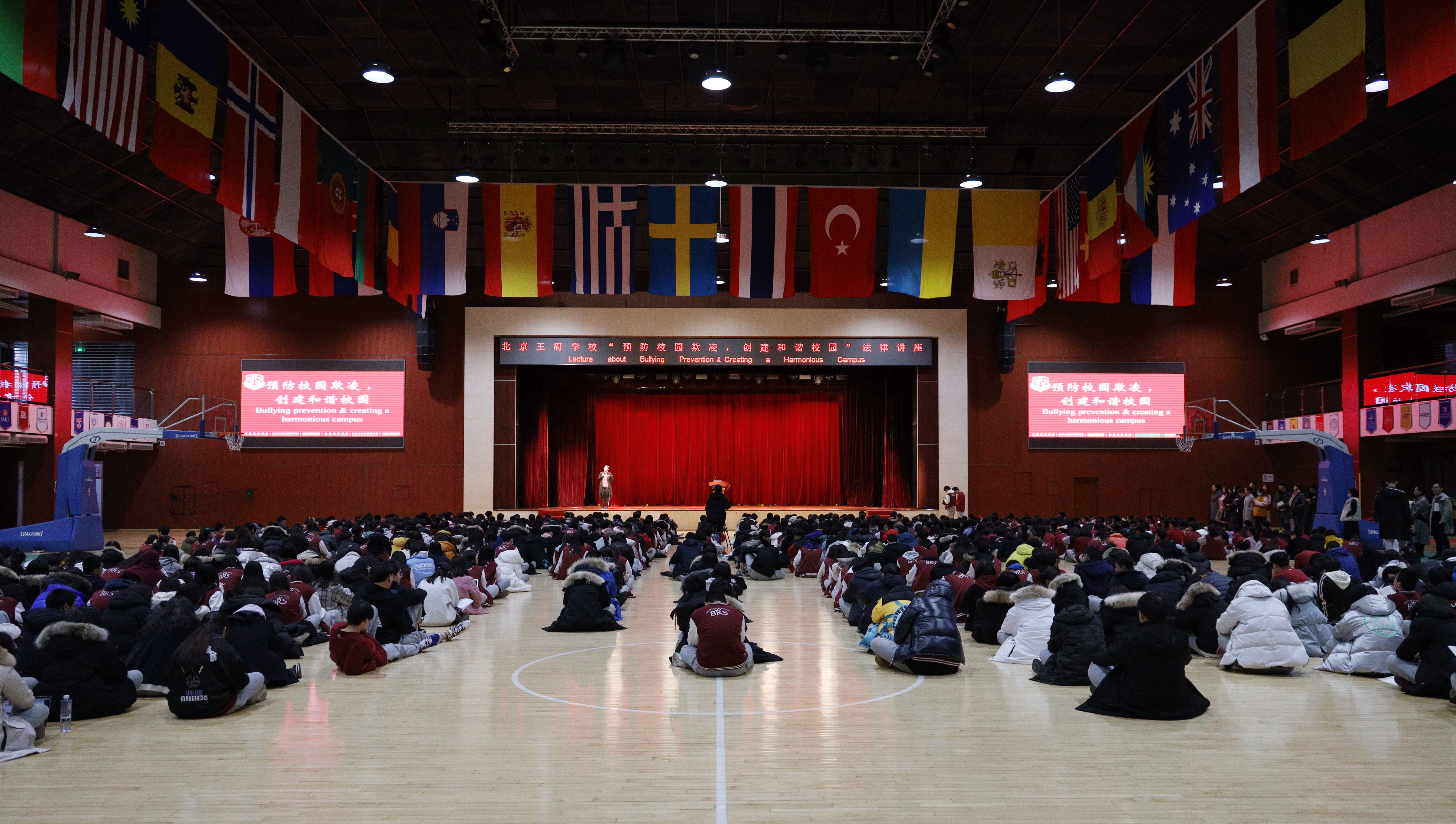 On December 11th, a lecture on “Bullying Prevention & Creating a Harmonious Campus” was successfully held in the Gymnasium. The lecture was delivered by Mr. Pi Yijun, professor at Chinese University of Political Science and Law. 260 students from all grades of the senior high school and grades 6 and 7 of the junior high school attended the lecture.