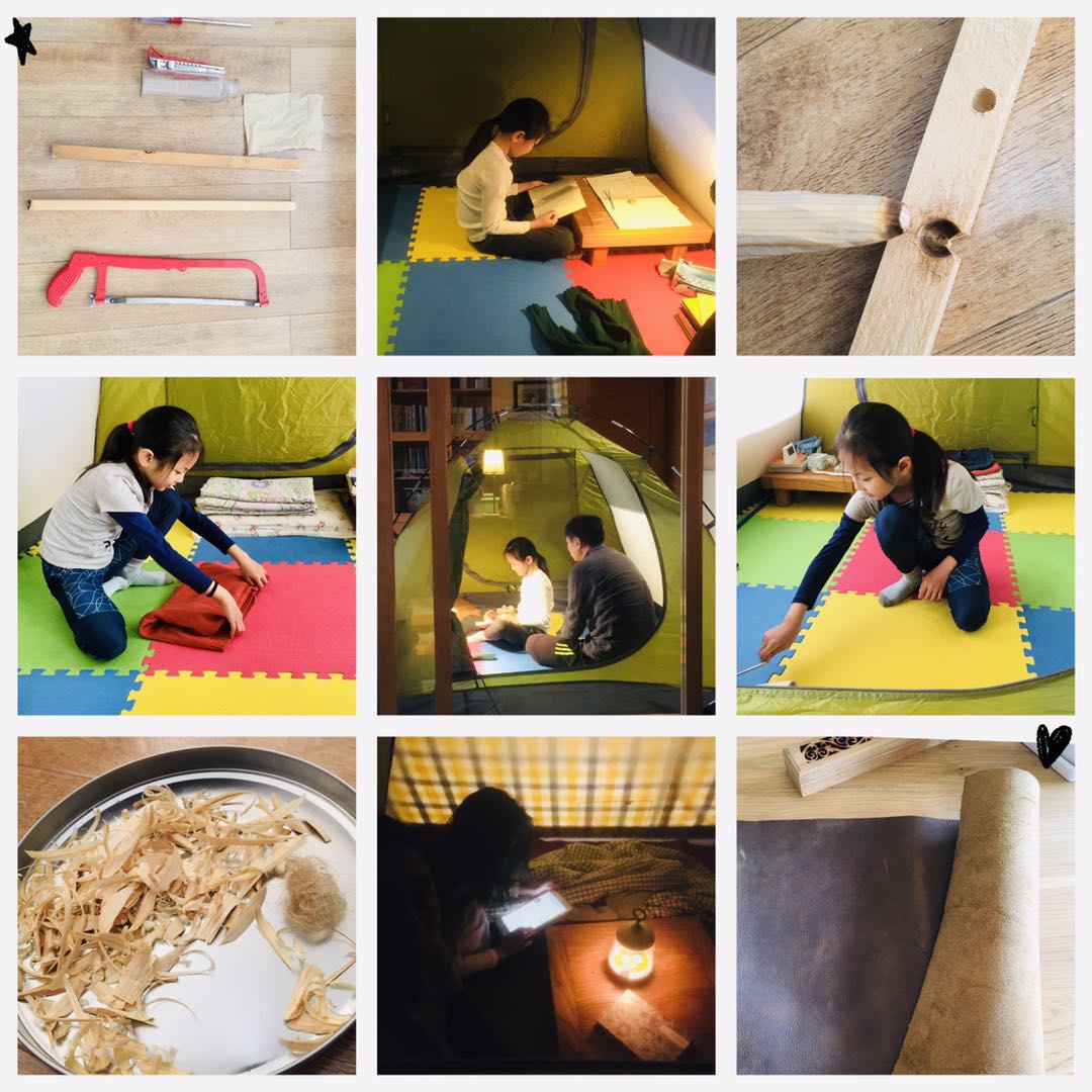 为了缓解想要“见山望水”的乡愁,明月和她爸一拍即合,不仅在家里搭起帐篷宿营,还搞了钻木取火、DIY皮具、蘑菇种植等原始作业。