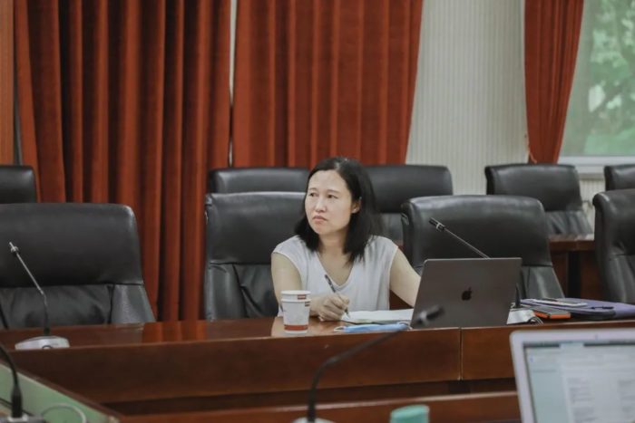 ▲王府外国语学校小学部语文组关昕老师就如何打破章节限制,进行大单元设计,与专家进行线上交流