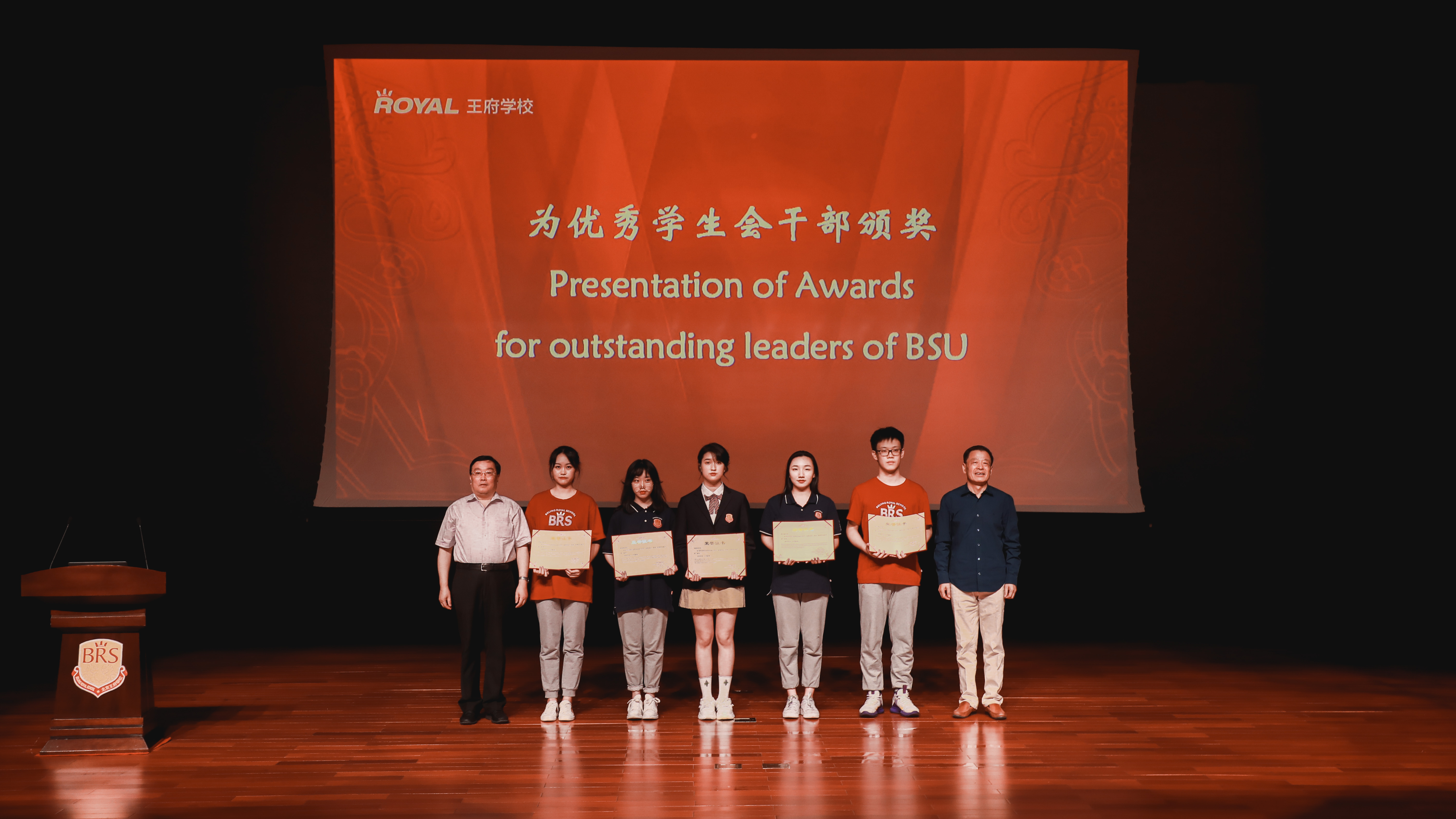 在本次改选大会伊始,北京王府学校校长王广发先生和北京王府学校常务校长衡孝军先生还亲自登台为上一届优秀学生会干部颁发了荣誉证书,杨家文、甘嘉欣、张亦瑶、李雨桐、王泽睿和龙久美苑六名学子获得了殊荣。