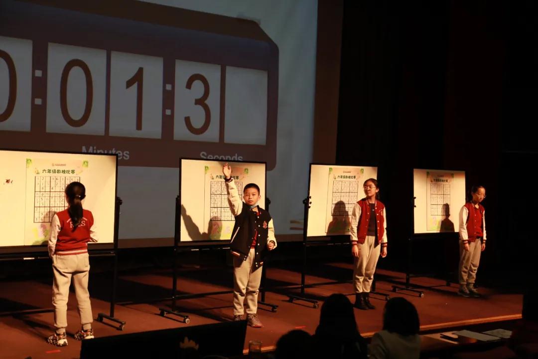 首先是六年级选手上场比拼,同学们争先恐后,踊跃投入,现场的紧张气氛瞬间飙升到高点。随后五年级同学的比赛再接再厉,同样精彩。这两轮比赛结束后进行了一场观众现场抢答活动,抢答成功的同学还收到了数学组精心准备的小礼物。最后上场的四年级选手们,通过实力的展现为本次比赛完美收官。