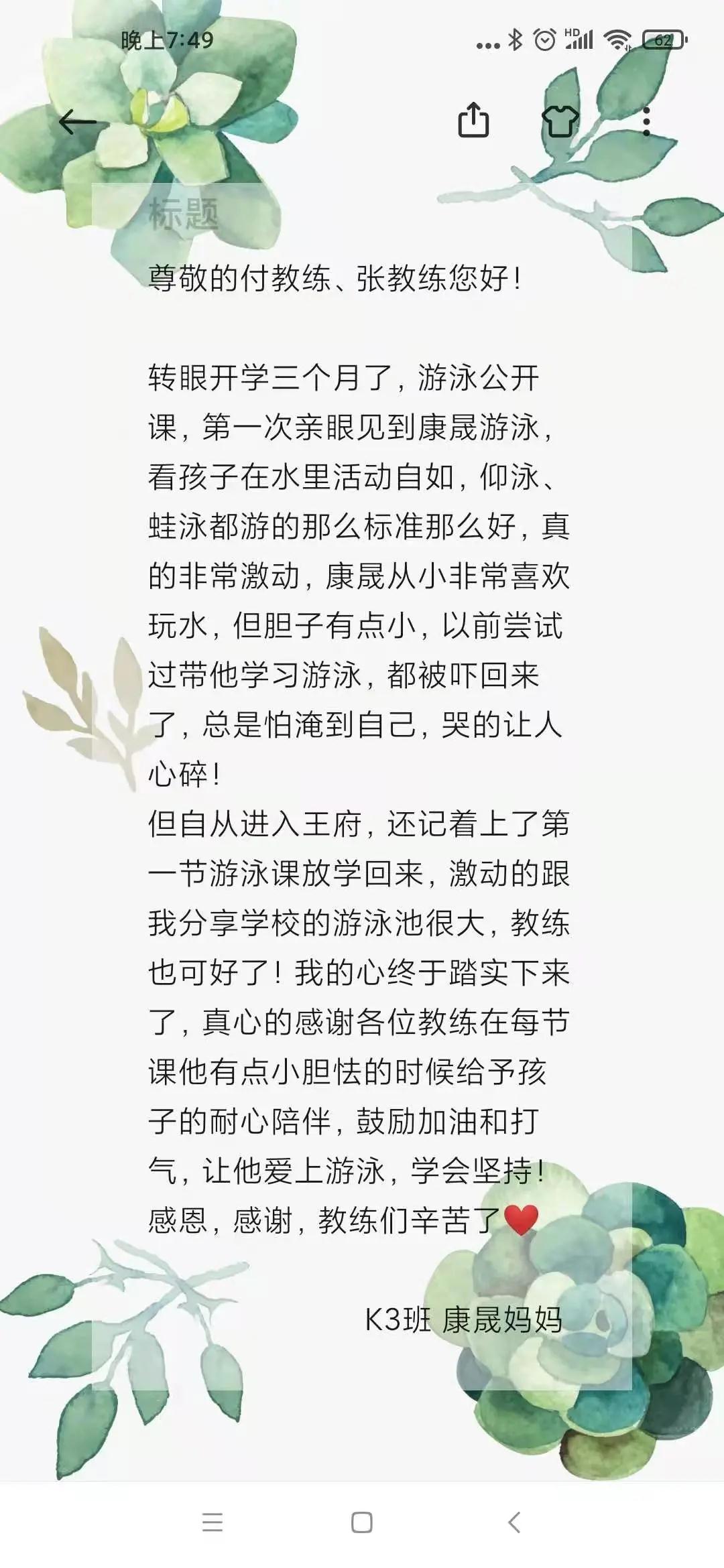 坚持还是放弃?在王府,我找到了最好的答案|K3班游泳展示课家长来信