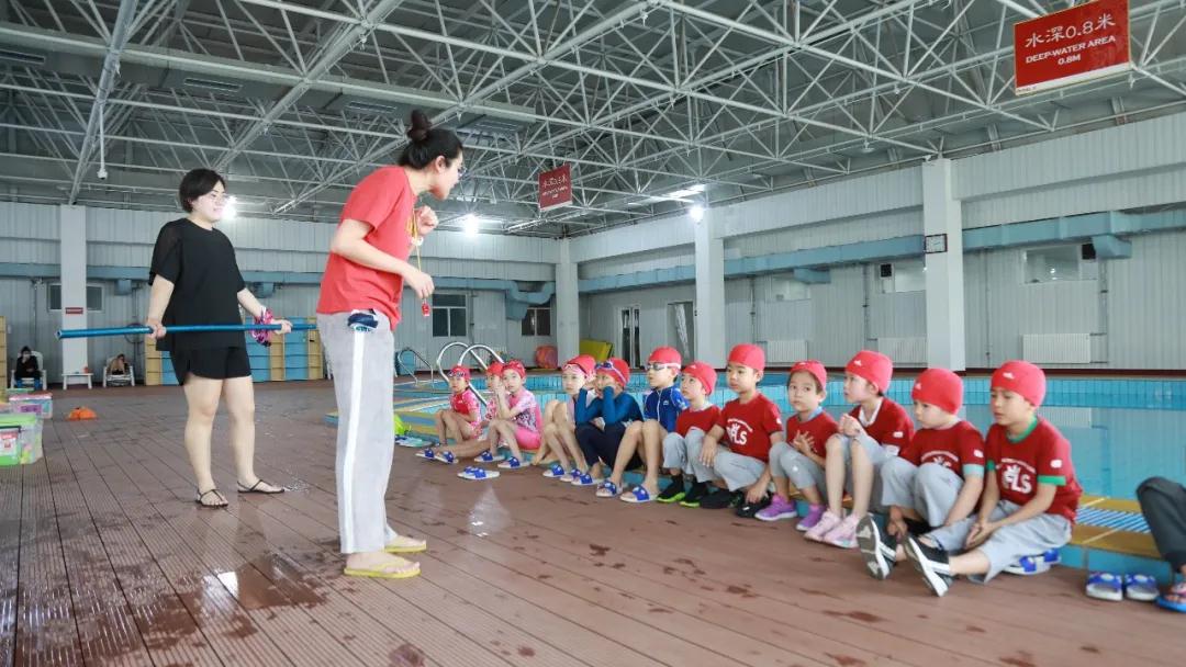 课上,教练为孩子们讲授安全自救知识,并带孩子做应激落水训练。