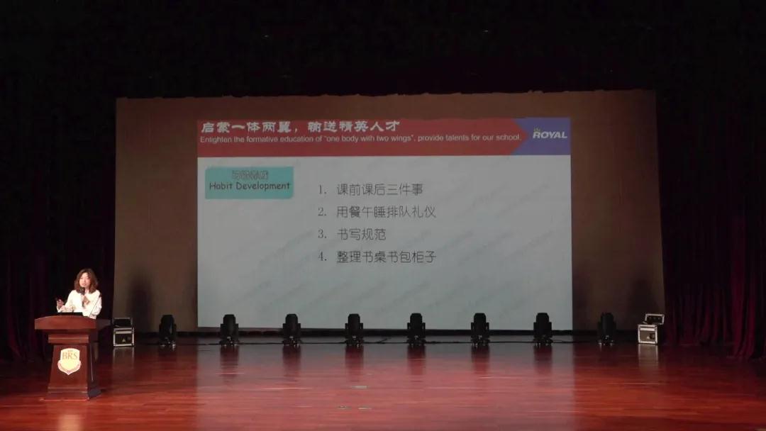 启蒙一体两翼,输送精英人才。KG学部孙雁主任从四个培养目标Respect,Responsibility,Honest,Politeness引入,分享KG学部新学期的学科活动规划,如阅读故事会、钢琴演奏会、游泳亲子嘉年华、 速算大比拼、学科闯关等。