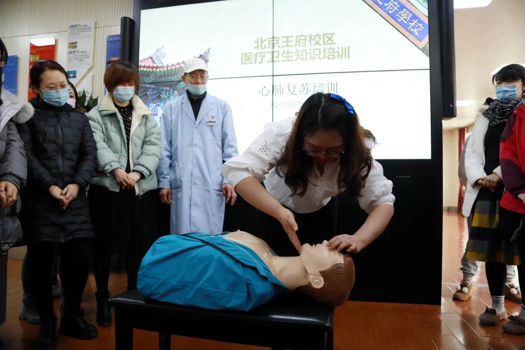 为普及心肺复苏、心脏除颤急救技术,传播急救知识和理念,3月9日至3月10日,北京王府外国语学校小学部邀请校医务室的孙祝大夫,对体育老师、导育老师及班主任老师分别进行了三场心脏骤停急救培训,为师生健康保驾护航。