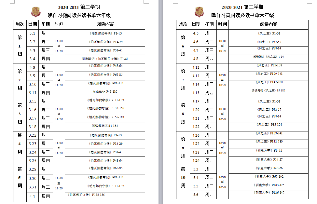 ▲中文阅读老师为各年级制定的微型阅读课标准