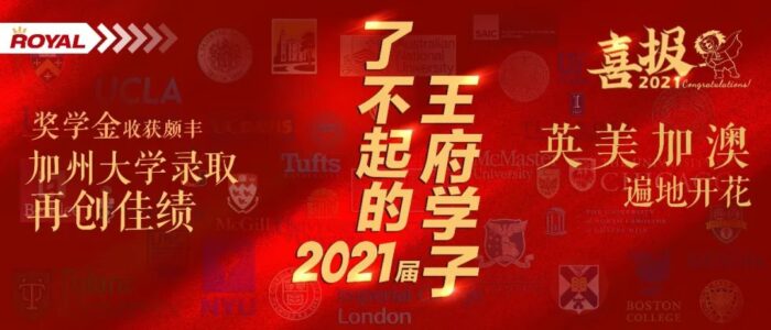 而此前,2021届王府学子已获美国Top10芝加哥大学,藤校康奈尔大学,埃默里大学、英国G5帝国理工学院,加拿大多伦多大学,澳洲国立大学等世界名校offer,可谓是遍地开花。